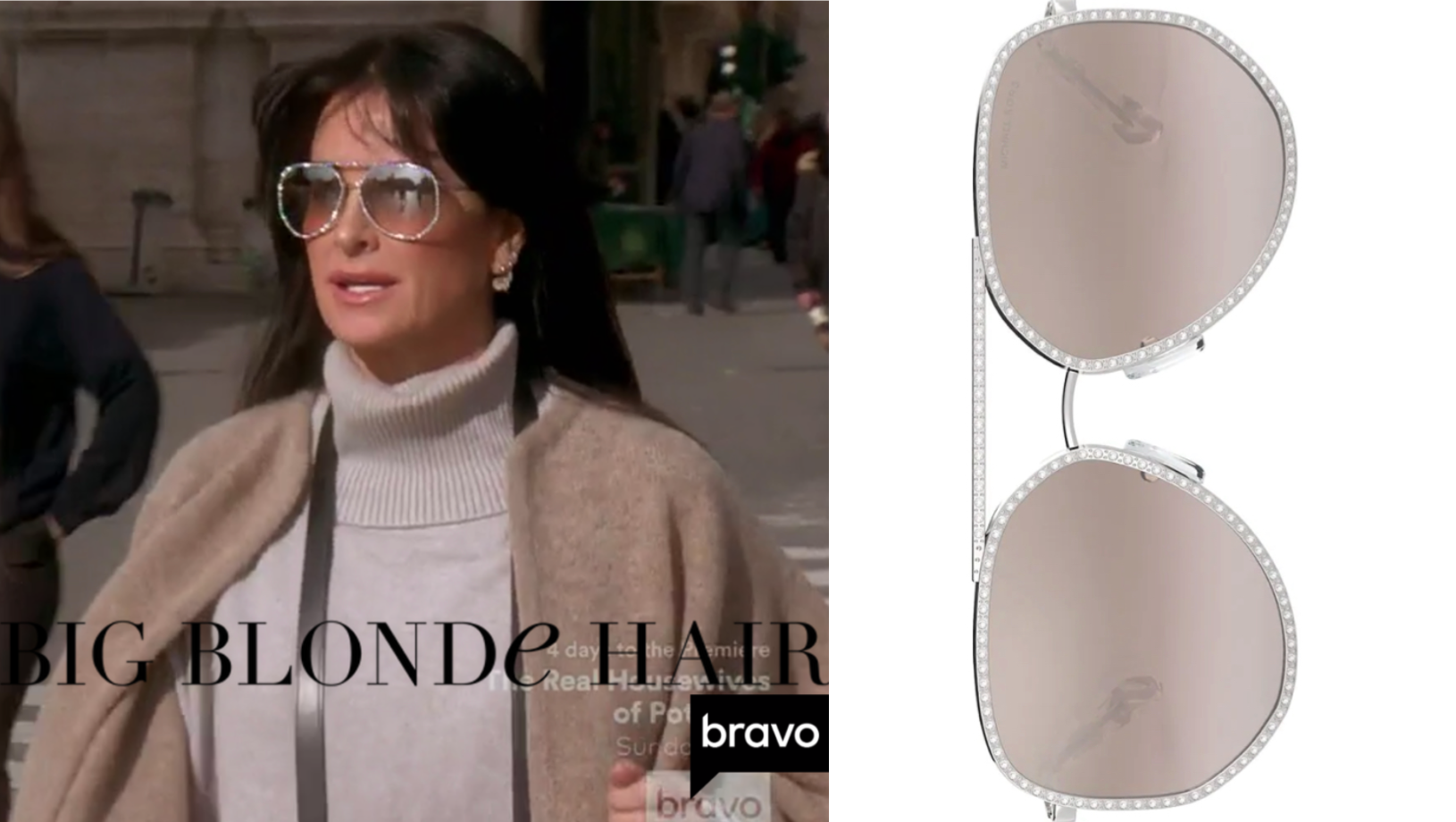 Kyle Richards Crystal Studded Aviator Sunglasses Big Blonde Hair