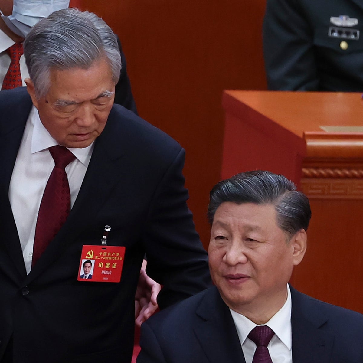 China and Chairman of the Communist Party of China. Chinese President Xi Jinping at left looks on as former Chinese President Hu Jintao is assisted to leave the hall during the closing ceremony of the 20th National Congress. 1 day agoBEIJING Oct 22 Reuters - Chinese former President Hu Jintao was unexpectedly escorted out of the closing ceremony of a congress of the ruling Communist Party on.